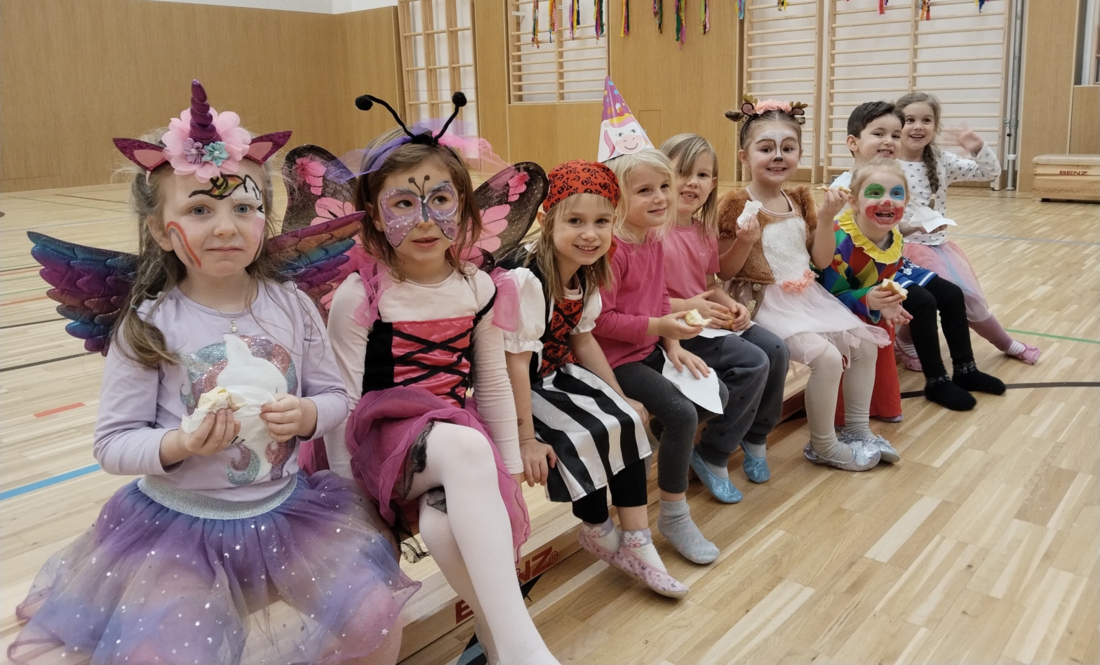 Feen, Clown, Zauberer, Piraten und noch mehr fanden sich beim Kinderturnen zum Faschingsfest ein. Mit Faschingsspiele, Staffellauf und viel Spass mit dem Fallschirm wurde ein buntes Kinderprogramm von den Trainerinnen der Sportunion Sparkasse Kufstein in dieser Sporteinheit geboten. Natürlich durfte auch der Faschingskrapfen am Ende nicht bei den Kids als Belohnung fehlen (: