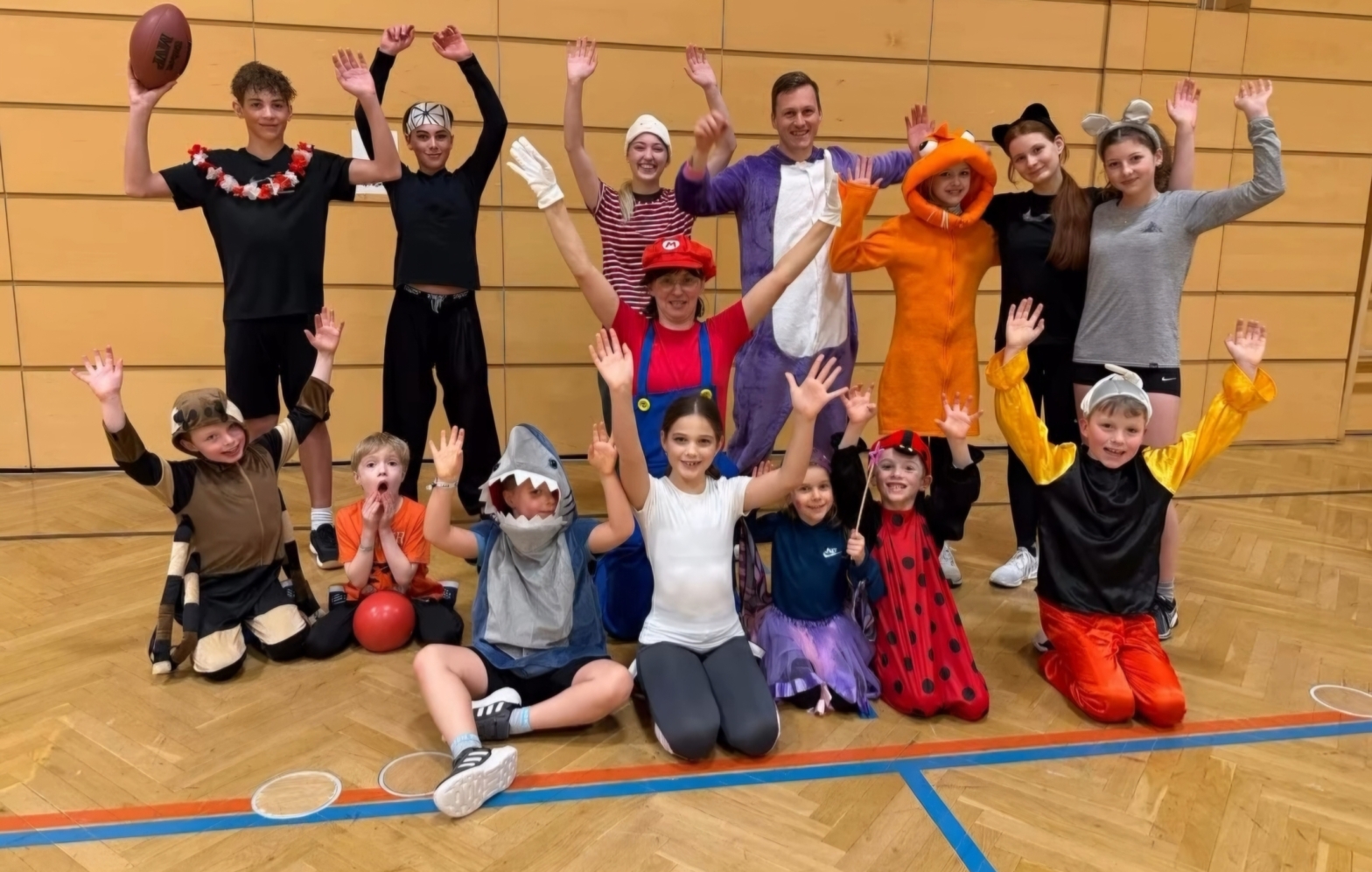 Feen, Clown, Zauberer, Piraten und noch mehr fanden sich beim Kinderturnen zum Faschingsfest ein. Mit Faschingsspiele, Staffellauf und viel Spass mit dem Fallschirm wurde ein buntes Kinderprogramm von den Trainerinnen der Sportunion Sparkasse Kufstein in dieser Sporteinheit geboten. Natürlich durfte auch der Faschingskrapfen am Ende nicht bei den Kids als Belohnung fehlen (: